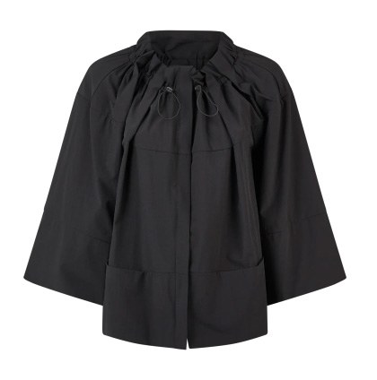 Black Technical Jacket with Ruched Neckline