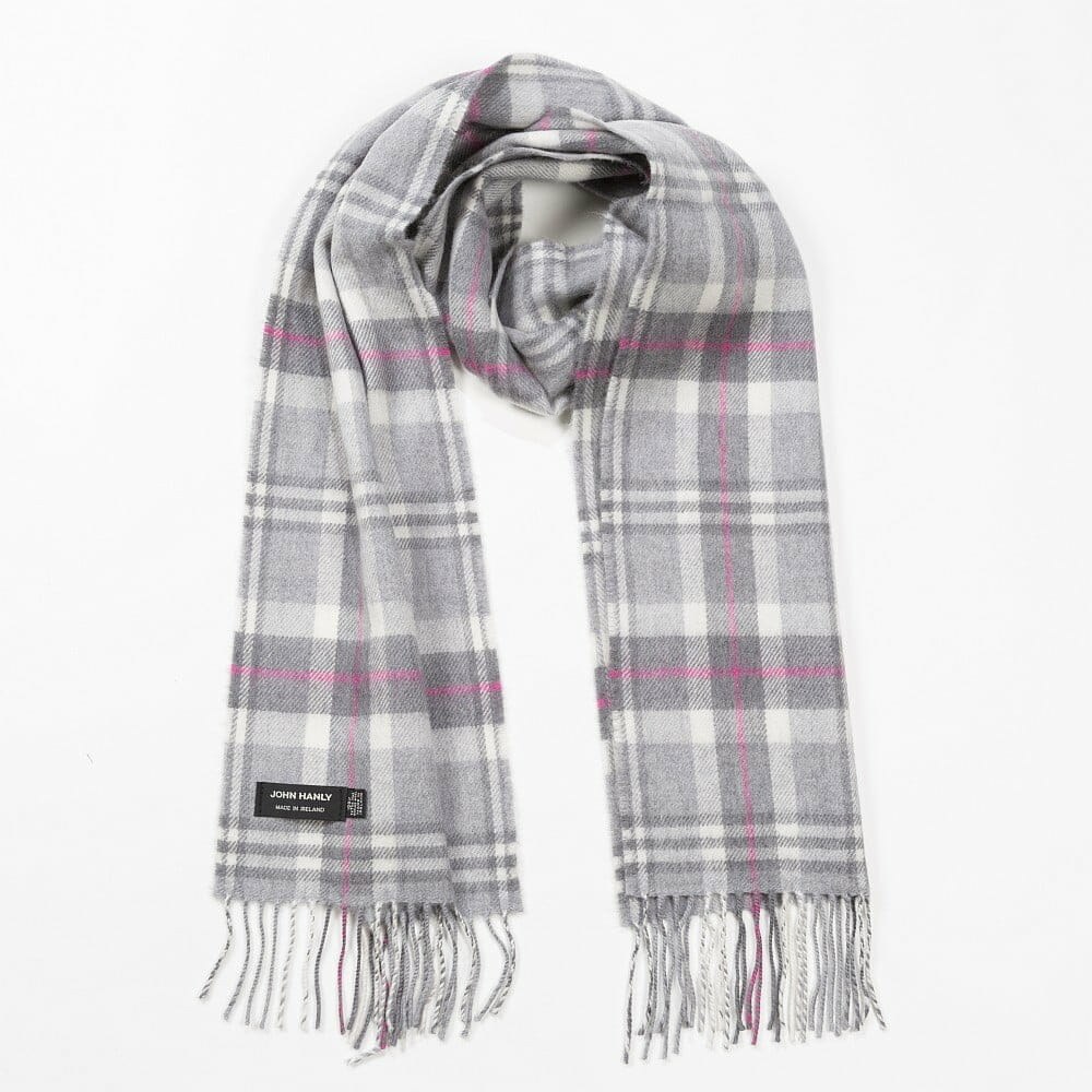 Merino Wool Scarf Grey, Pink and Cream Check